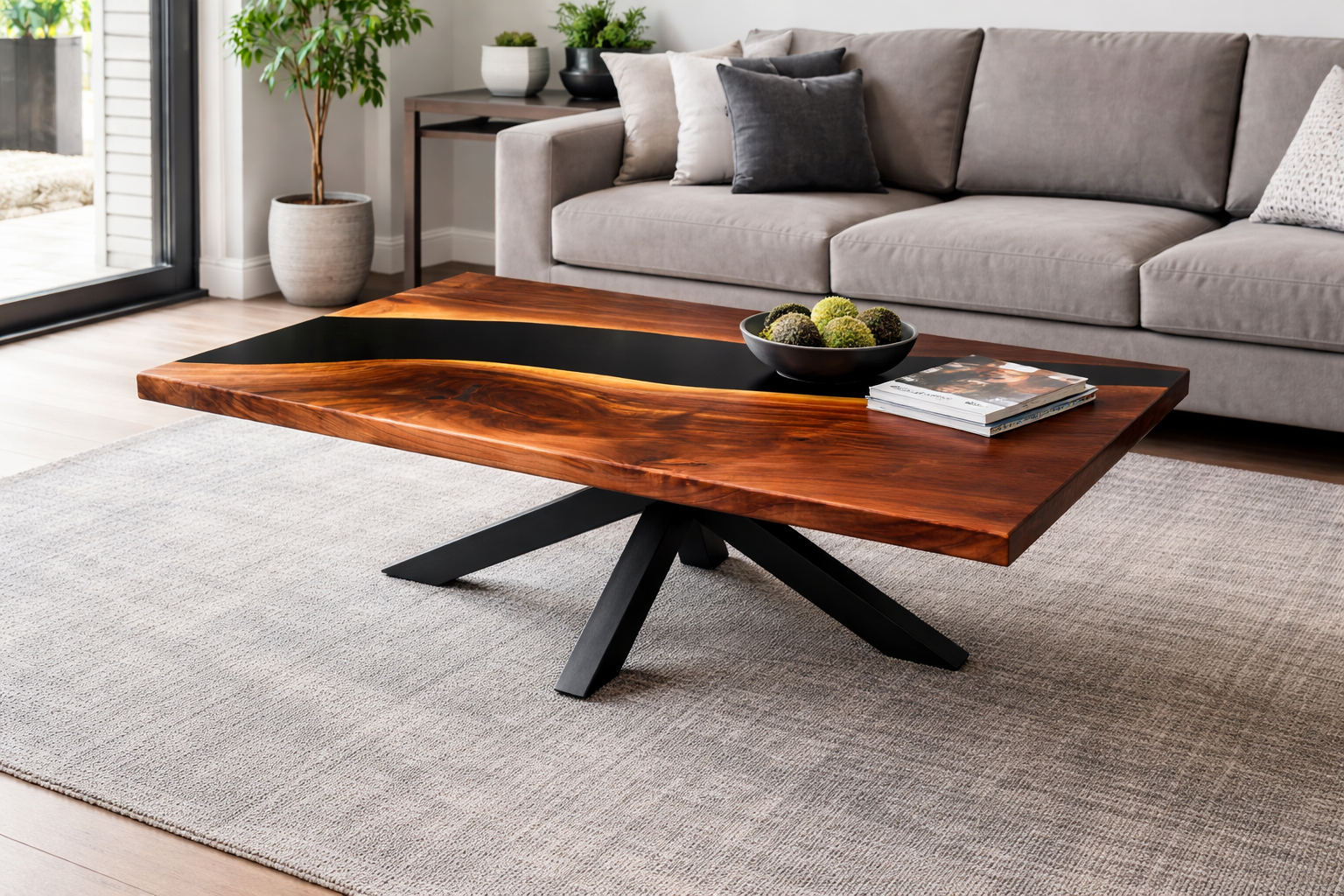 Designed to anchor your living space, our custom epoxy coffee tables blend natural materials with modern craftsmanship. Customize your table’s size, wood species, epoxy details, and base style to create a piece that complements your home perfectly.